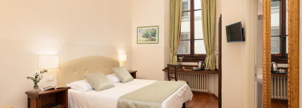 Option de choix pour un séjour en duo dans le centre historique de Florence, les chambres doubles économiques peuvent héberger deux personnes au maximum. Elles sont pourvues d'un lit double. Ces logements climatisés et insonorisés disposent d'une connexion Wi-Fi, d'une télévision LCD avec chaînes internationales, d'un minibar et d'un coffre-fort.